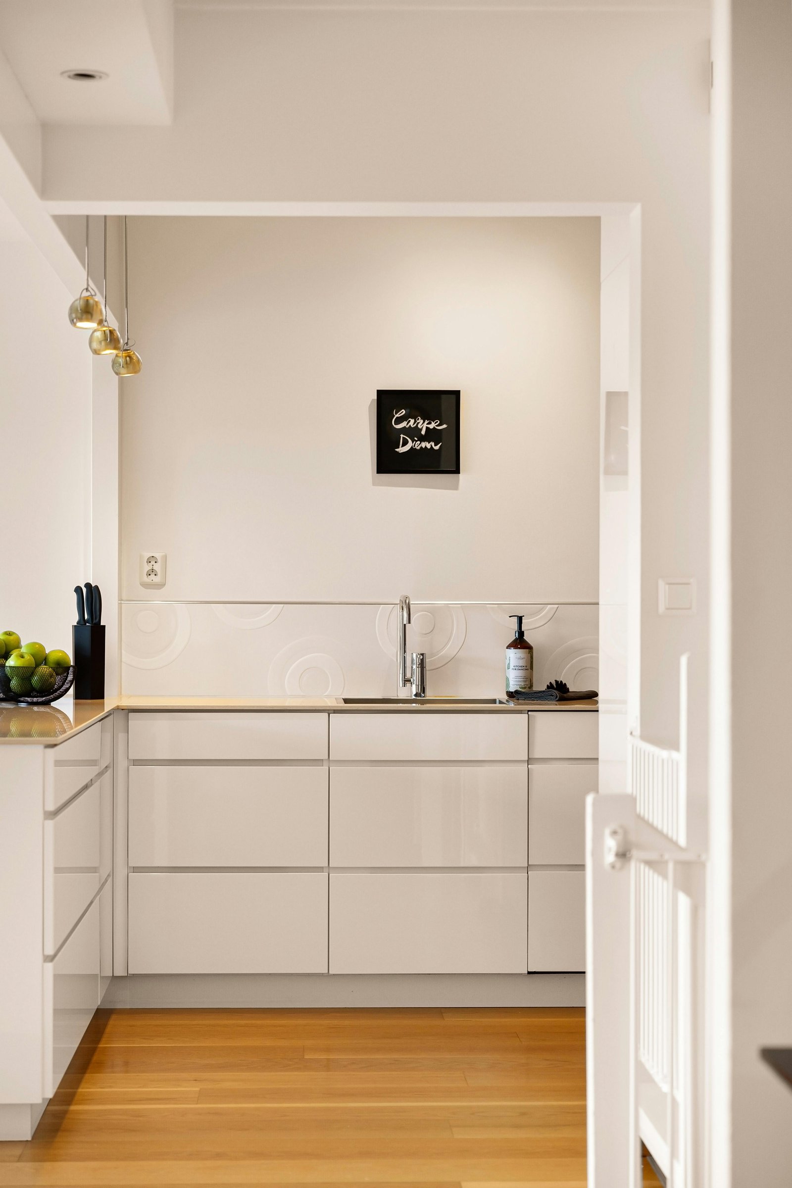 Cocina blanca de estilo minimalista y líneas limpias